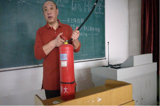 本次讲座由安全保障部防火科科长王日晨老师主讲,王日晨老师就如何报警和报警注意事项、火灾现场逃生自救常识等消防基础常识内容作了重点讲解。结合以往发生的重大火灾案例深入浅出地将生活中造成火灾的原因、校园安全用电常识及电气火灾预防、常见火灾及处理方法、遇到火灾时的逃生自救方法等消防知识以通俗易懂的语言作了详细的讲解和剖析,使讲座生动有趣。通过现场示范如何使用灭火器,教会同学在危险情况下沉着冷静使用灭火器,老师精彩的讲解受到了广大同学的欢迎,收到了良好的效果。