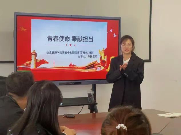 课程伊始,孙悦老师详细介绍本次团课“推优”班培训的内容及重要意义,讲述中国共产主义青年团成立的背景及团旗、团徽的内容含义。她指出,青年团员要扎实学习团的基本理论知识,积极向党组织靠拢,坚定理想信念,树立正确的人生观、世界观、价值观。