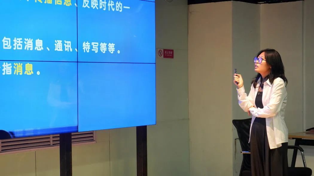高宇阳简单介绍了此次培训会的主要内容,共分为文稿撰写和摄影两大板块。在文稿撰写部分,高宇阳通过理论知识讲解、案例分析等多种方式来分享消息、新闻稿、活动稿等各种稿件的撰写思路,让同学们全面了解了文稿撰写的基本要素、技巧和方法。高宇阳着重强调了结构清晰、语言精练且表达准确的重要性,通过实际案例分析,讲解了如何提炼核心观点,构建逻辑框架等实用技巧。文稿撰写部分培训结束后,王硕从审稿人的角度详细梳理了稿件撰写中存在的典型问题,并就一些重点事项进行进一步强调,她要求同学们要明确稿件所写的目的和意义,注意主次分明、动宾搭配、标题、时间等细节问题。