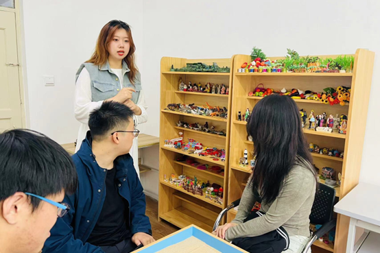 随后,同学们按照规则依次在沙盘中挑选自己心怡的沙具,通过移动沙具,摆出自己想要的场景,进而展现自己的情感和想法。活动的最后,王硕老师引导同学们表达每一个沙具和场景给自己带来的感受与想法。同学们通过分享自己的感受与想法,深化了对彼此的了解。