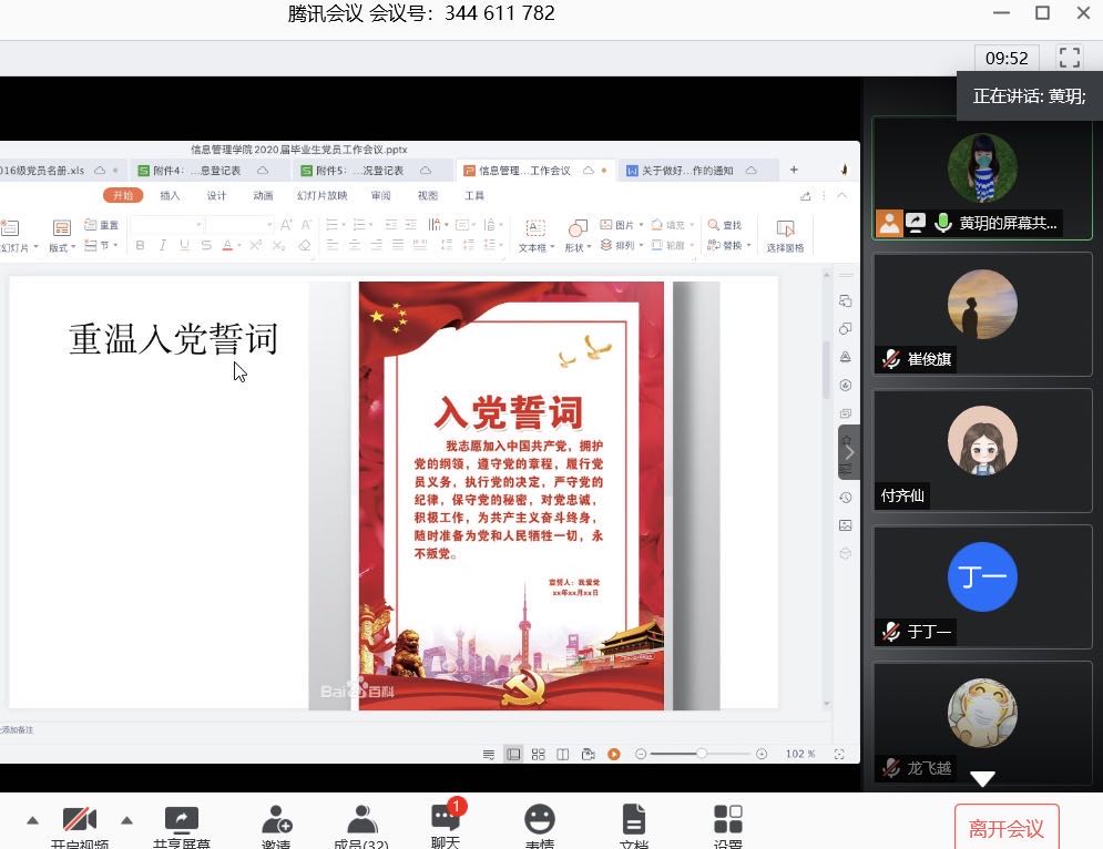 在2020届毕业生党员即将毕业之际,为进一步增强毕业生党员党性意识,发挥毕业生党员在文明离校过程中的先锋模范作用,教育引导广大毕业生党员“不忘初心、牢记使命”,牢固树立“四个意识”、坚定“四个自信”,始终在思想上政治上行动上同以习近平同志为核心的党中央保持高度一致。2020年6月10日,开云在线登录通过腾讯会议召开线上2020届毕业生党员离校教育大会,会议由学院2020届毕业生辅导员黄玥老师主持,2020届全体毕业生党员参加。