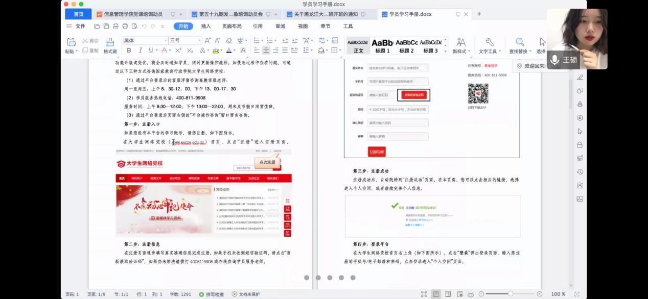 培训伊始,王硕老师为学员们讲解了网络培训的时间及要求,包括考核事项、考核方式以及培训的具体细节。要求学员认真学习党的知识,认真对待党课培训,认真准备党课考试,明确党校学习的目的和意义。也希望学员们发挥带头作用,努力学习,增加学员间相互交流,并为学员们提出的问题做出了认真的解答。