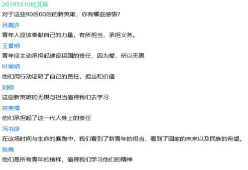 在此基础上,同学们积极讨论,各抒己见,交流、分享自己的学习感悟并根据当下的疫情情况,就在疫情中青年人应有怎样的作为全方面、多角度进行分析。在疫情期间参与志愿服务的同学们向大家分享自己在志愿服务中的所见所感,让本次的讨论更真实、更具感染力,在讨论中同学们也更明确自己作为青年一代应有的担当。
