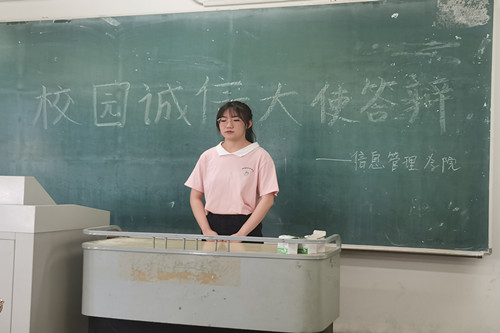 本次评选活动以答辩形式进行,并本着公平公正的原则,结合学生日常的个人表现、学习成绩等标准,经学院评委的评选和考察,最终确定推荐2019级电子商务专业李伟平为学院“诚信大使”代表,参与校级评审。