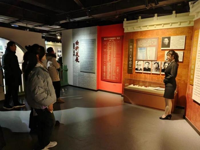 伴随着讲解员生动、鲜活的讲解,同学们依次步入三个展厅进行参观。一幅幅历久弥新的图片、一件件承载情怀的展品、一代代栉风沐雨的黑大人,同学们穿过岁月的回廊,从充满时代感的文字与影像中感受我校浓厚的历史文化积淀和杰出的办学教育成果,在历史缩影中回顾黑龙江大学跨越半个多世纪的风雨历程。