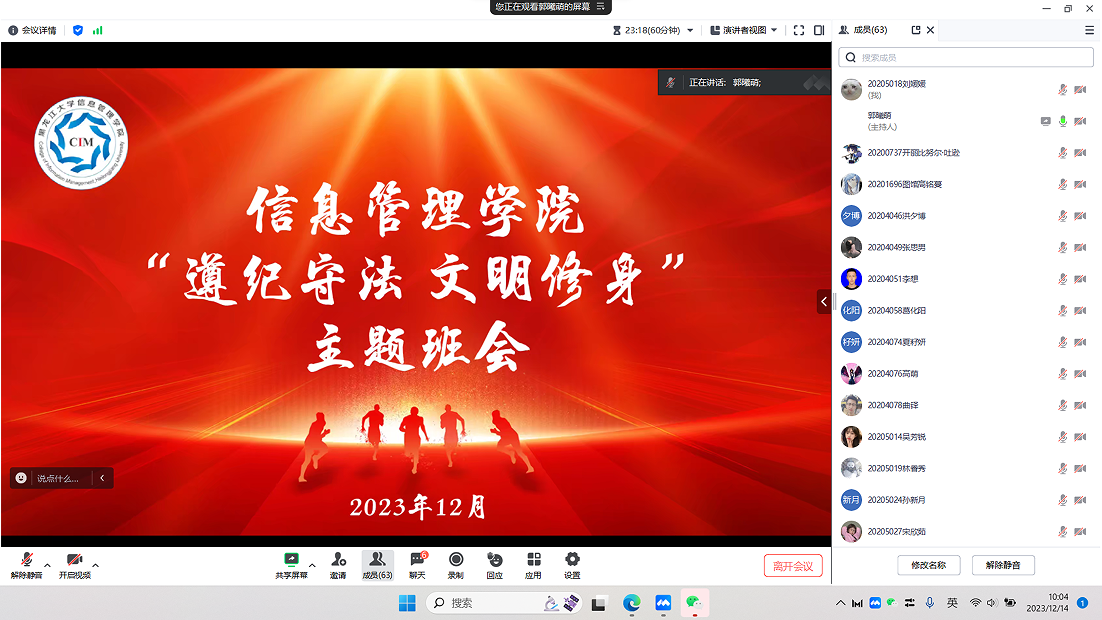法不可违,纪不可改。本次“遵纪守法 文明修身”主题班会既是一次深入的思想教育,同时也是对《黑龙江大学学生管理规定》(2023年9月修订)一次深入的学习。希望信管学子们通过本次主题班会,坚持贯彻“遵纪守法,文明修身”的理念,以高尚的品格斩除万难,以良好的素质奋进新的未来。(开云在线登录供稿)