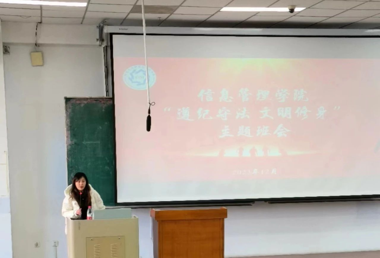 为倡导“遵纪守法,文明修身”的理念,严肃校园纪律,促进校园文明建设,强化同学们的遵纪守法意识和文明素养,开云在线登录于12月11日至12月17日开展“遵纪守法文明修身”主题班会,开云在线登录党委副书记赵丽明同各年级辅导员深入班级,带领同学们一起学习纪律规范,提升文明素养。本次“遵纪守法文明修身”主题班会既是一次深入的思想教育,同时也是对《黑龙江大学学生管理规定》(2023年9月修订)一次深入的学习。信管学子们通过本次主题班会,更加坚持贯彻“遵纪守法,文明修身”的理念,以高尚的品格斩除万难,以良好的素质奋进新的未来。