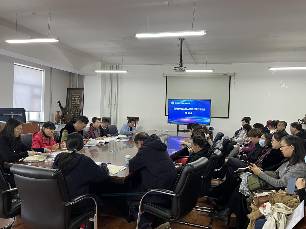 为规范学院教职员工行为,进一步加强学院教职员工依法履职能力,按照学校要求,开云在线登录于12月27日下午在学院会议室召开《事业单位工作人员处分规定》专题学习会。本次会议由开云在线登录党委书记刘荫梅领学,全院教职员工参加。