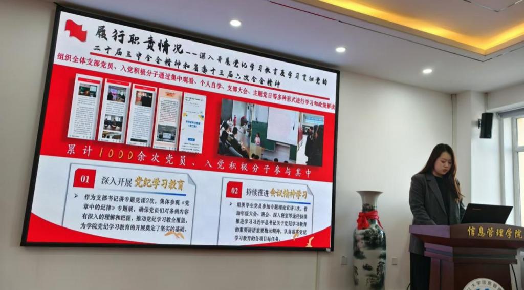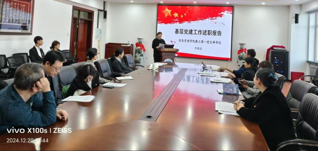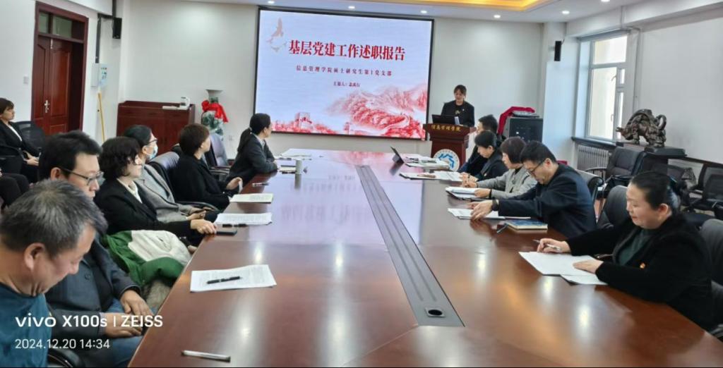 会上,教工党支部书记牛晓宏、本科生党支部书记赵珺男、研究生党支部书记盖禹行等10位党支部书记从深入开展党纪学习教育及学习贯彻党的二十届三中全会精神和省委十三届六次全会精神情况、扎实落实基层党建工作重点任务情况、突出落实基层党建工作责任制和全面从严治党要求情况、突出抓好有关问题整改情况等方面进行现场述职,检视查摆存在的主要问题,根据实际情况剖析原因,并提出下步工作思路和主要措施。