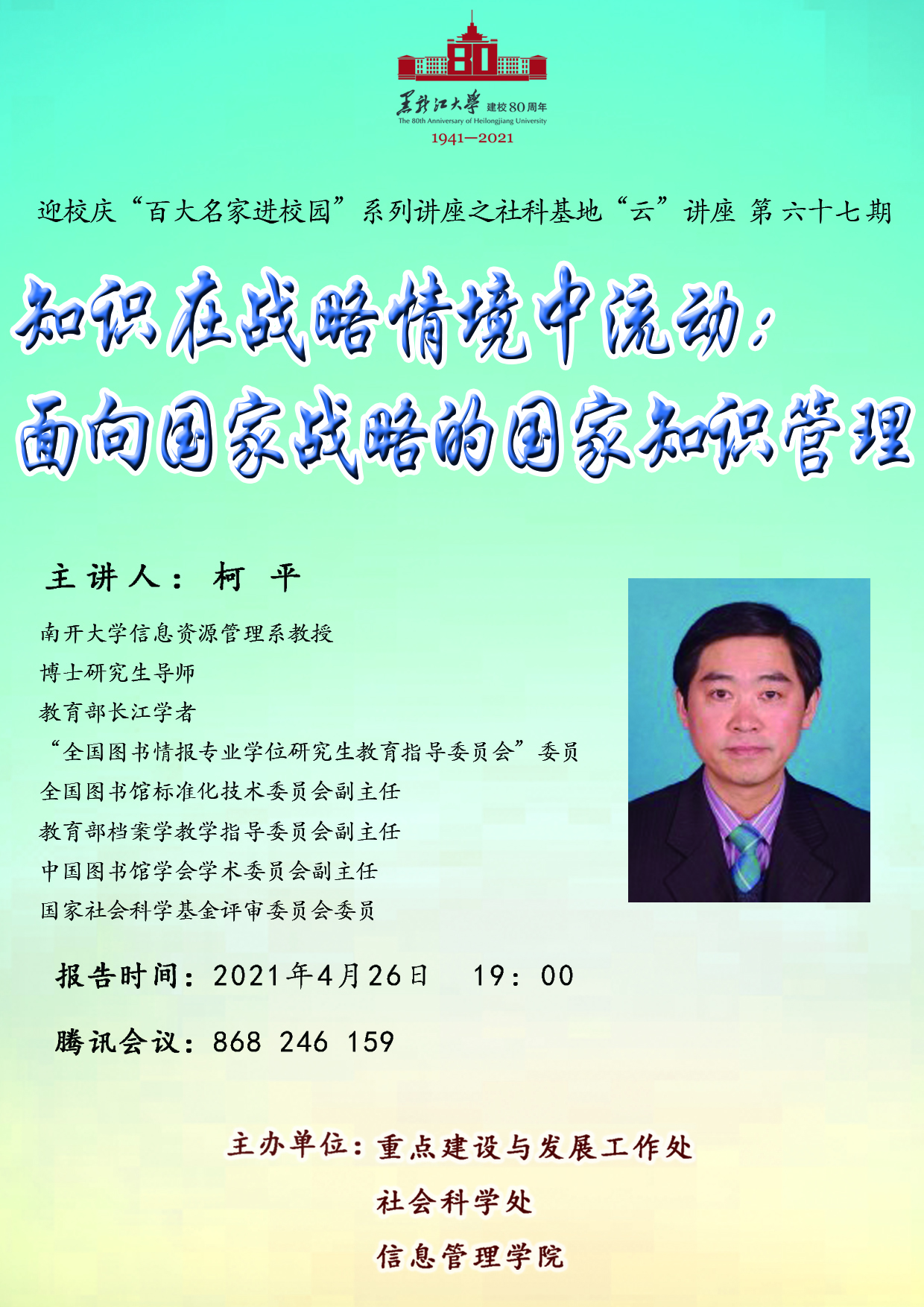 百大名家进校园||开云在线登录学术报告——第六十七期